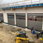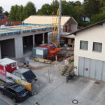 In den darauffolgenden Wochen schritten die Arbeiten zügig voran: Die Bodenplatte in der Fahrzeughalle wurde fertiggestellt, wichtige Elektro- und Installationsarbeiten umgesetzt und weitere Bauabschnitte abgeschlossen. Im Oktober erfolgten umfangreiche Arbeiten an der Bodenplatte der zukünftigen Fahrzeughalle, darunter die Bewehrung, das Verlegen des Blitzschutzes sowie der Fußbodenheizung und schließlich das Betonieren.