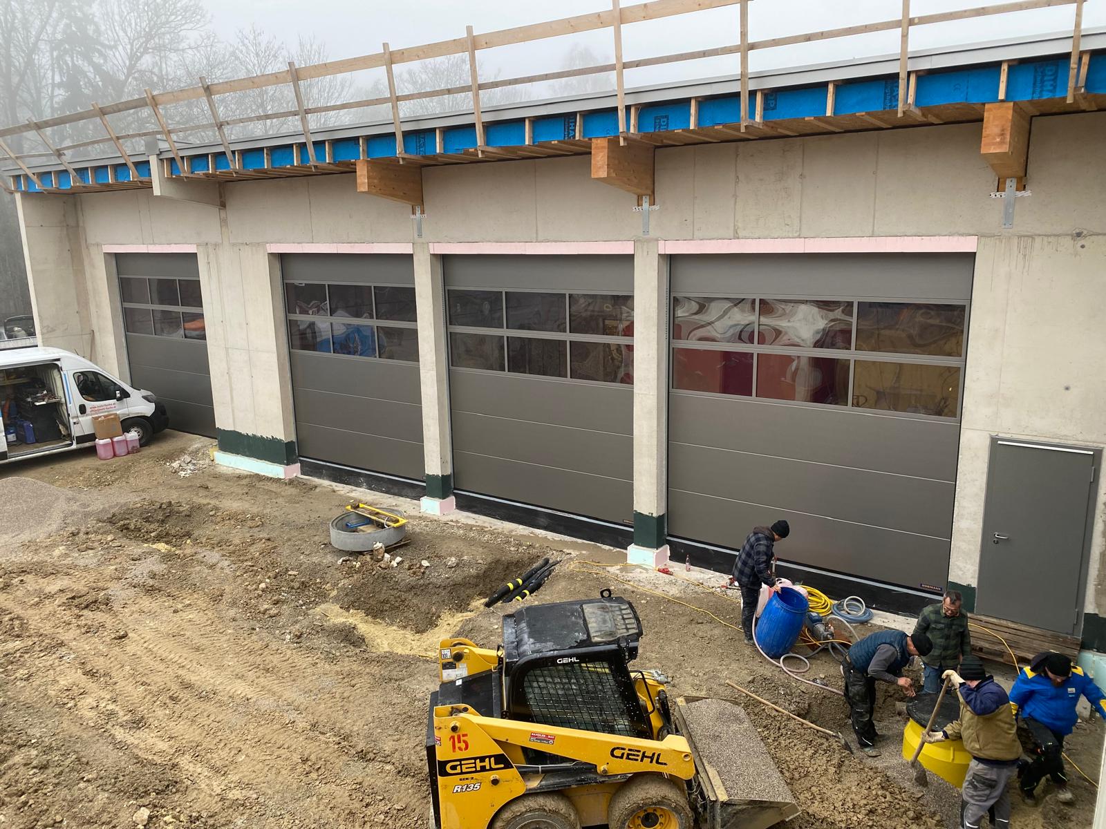 In den darauffolgenden Wochen schritten die Arbeiten zügig voran: Die Bodenplatte in der Fahrzeughalle wurde fertiggestellt, wichtige Elektro- und Installationsarbeiten umgesetzt und weitere Bauabschnitte abgeschlossen. Im Oktober erfolgten umfangreiche Arbeiten an der Bodenplatte der zukünftigen Fahrzeughalle, darunter die Bewehrung, das Verlegen des Blitzschutzes sowie der Fußbodenheizung und schließlich das Betonieren.