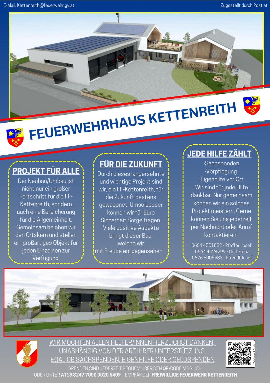 Spenden zur Umsetzung des Feuerwehrhausbaus sind gerne über folgende Bankverbindung oder durch den QR-Code möglich: